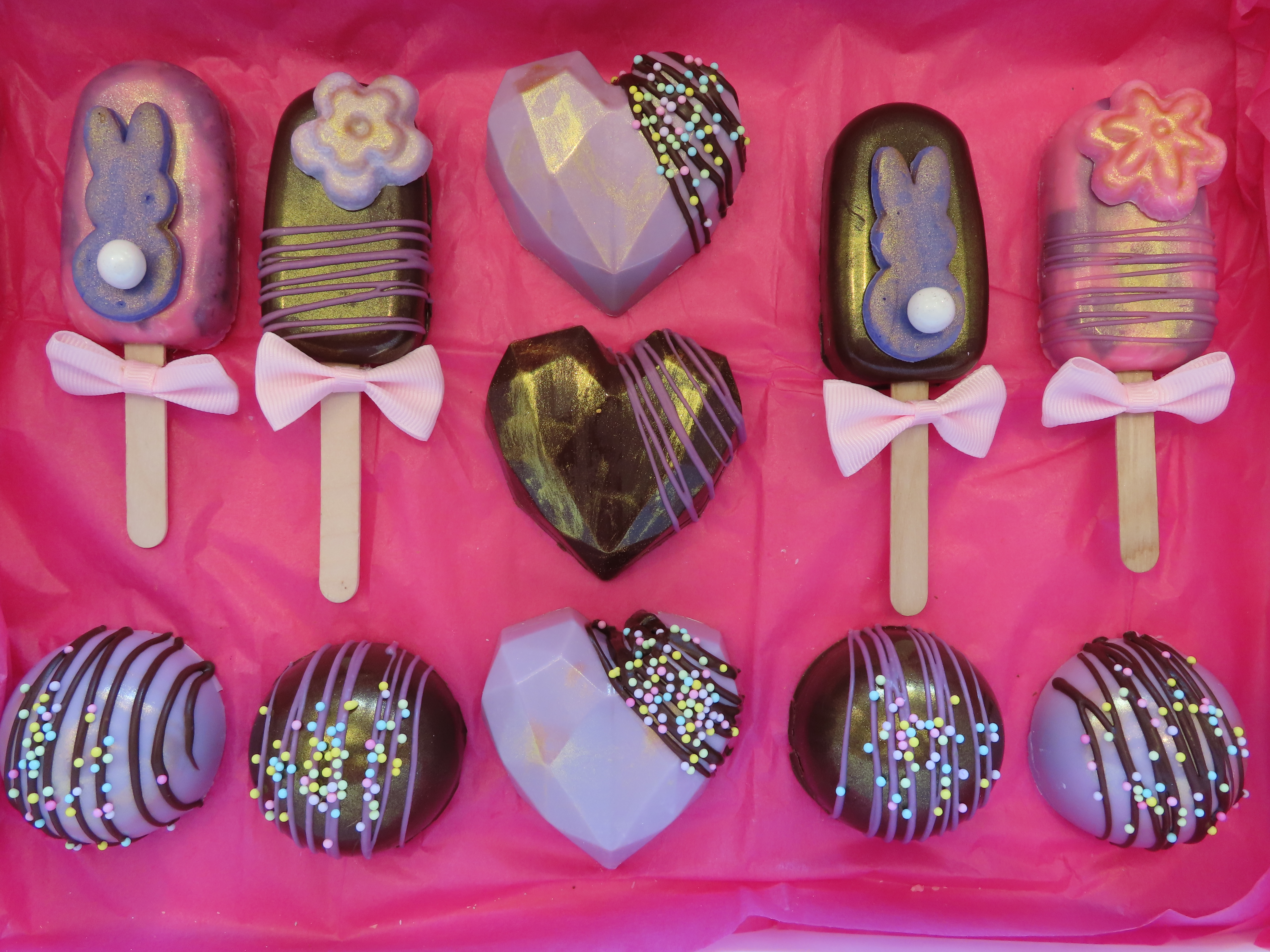 Scrumptious treatsicles and truffles for Easter 2021! Our egg-shaped truffle packs were a hit, and so cute as a gift!