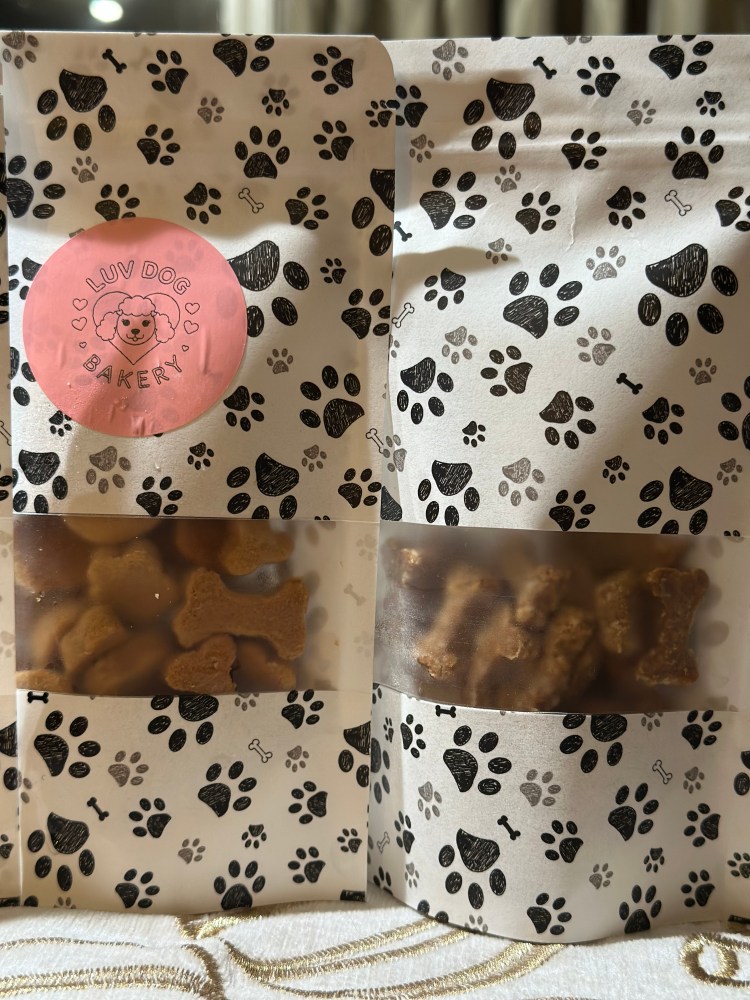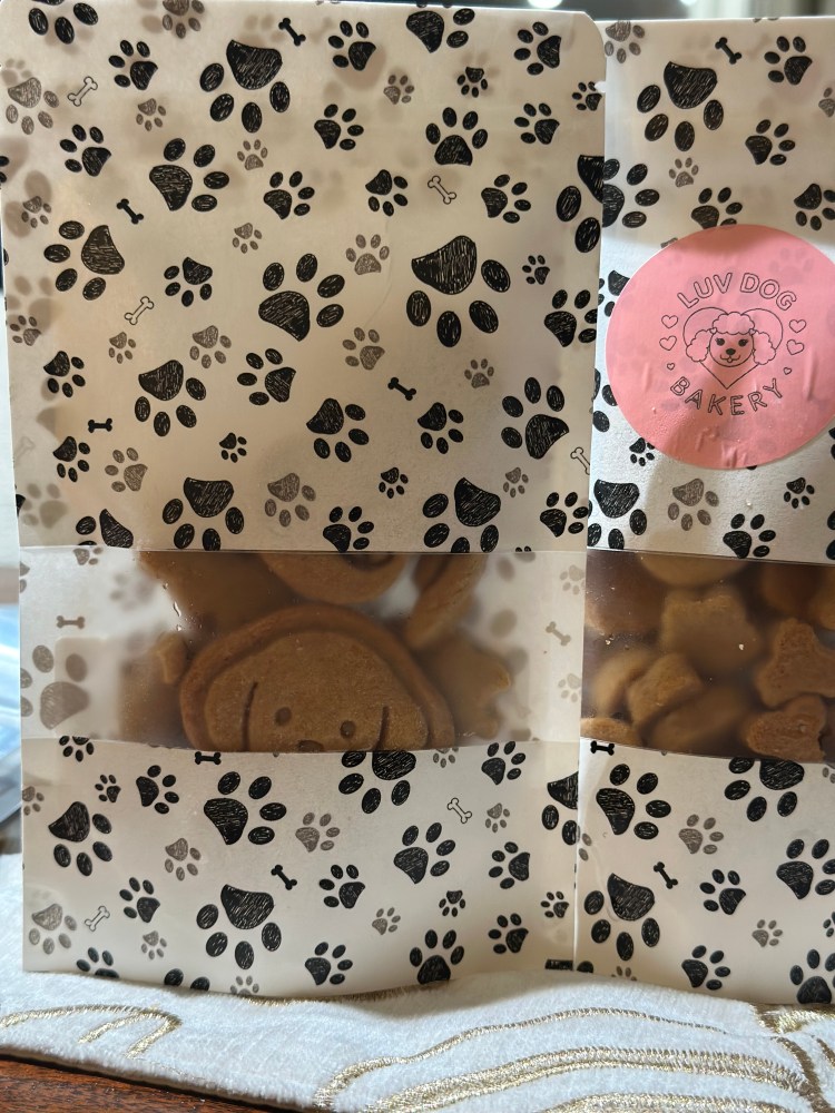 Luv Dog Bakery Dog Treat Bags From scratch small dog cookies in decorative bag.Alternative & Custom cookie designs availableDifferent flavors to choose fromTasty fun for the entire K-9 family! Share this:TweetLike Loading...